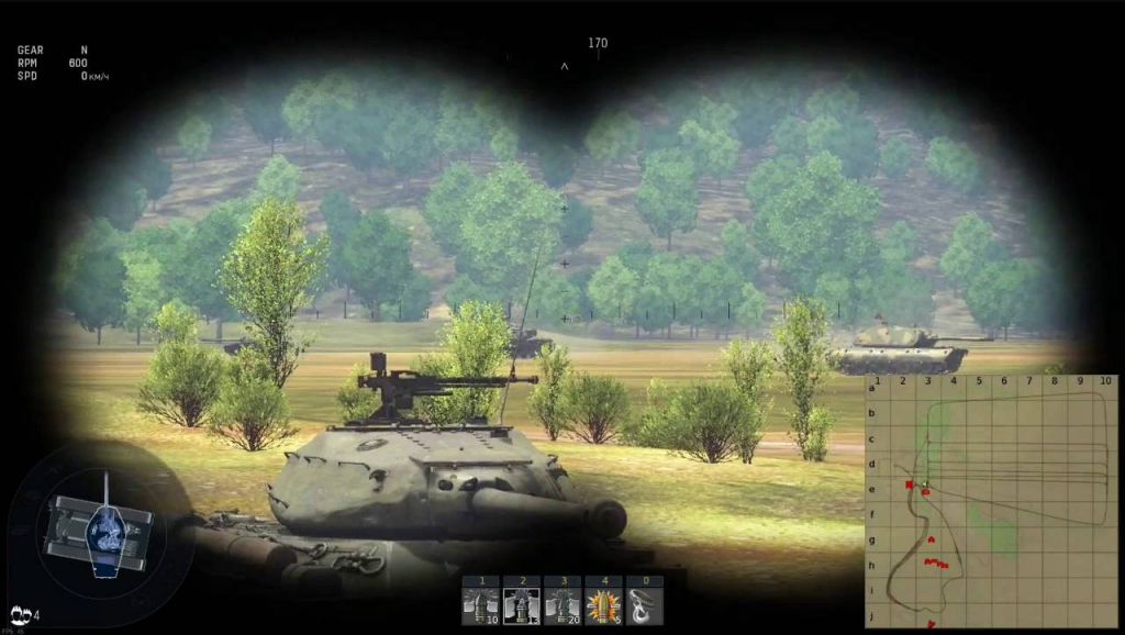 - Танки: у нас нет цветного креста, который помогает прицеливаться и определять дальность пробивания брони. Мы должны сами определить расстояние, а затем соответствующим образом поднять прицел, чтобы поразить врага. Также нет маркера вражеской техники. В этом режиме мы также играем против самолетов, управляемых игроком.