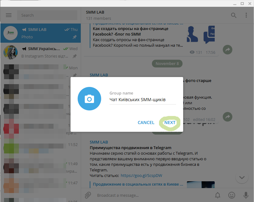 Как видите создавать группы (чаты) в Telegram очень просто и не требует каких-то специальных навыков, в отличие от продвижения в Telegram.