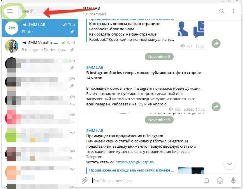 Шаг 1. Откройте свой Telegram и нажмите на меню.