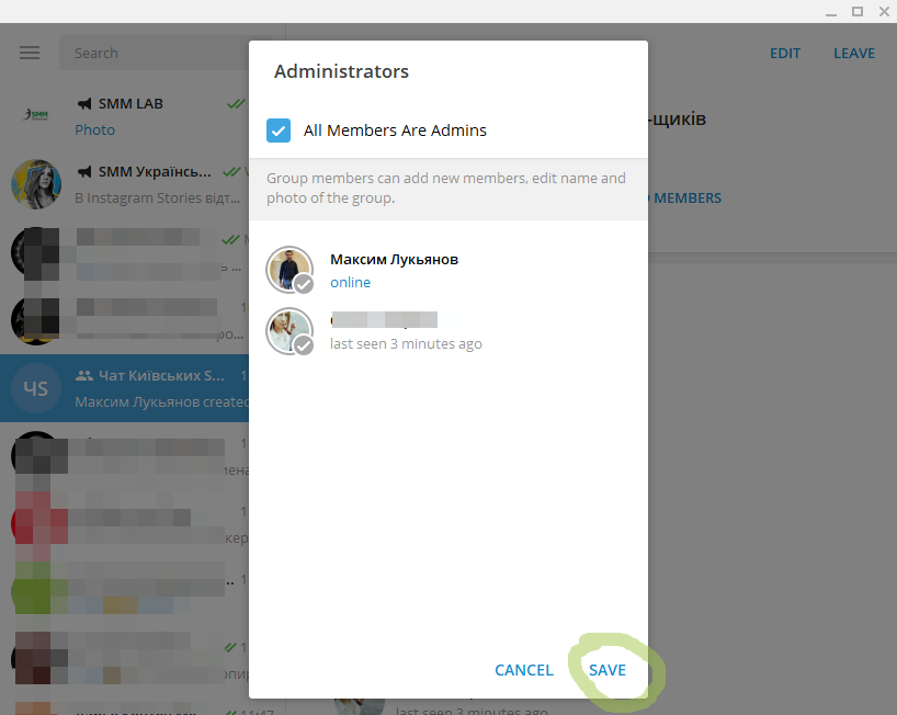 Шаг 8. Выбрать админа вы сможете со списка участников.
