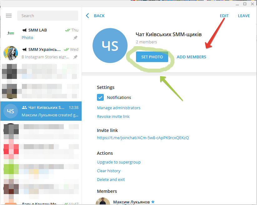 Шаг 9. Здесь же вы можете добавить/обновить фото чата.