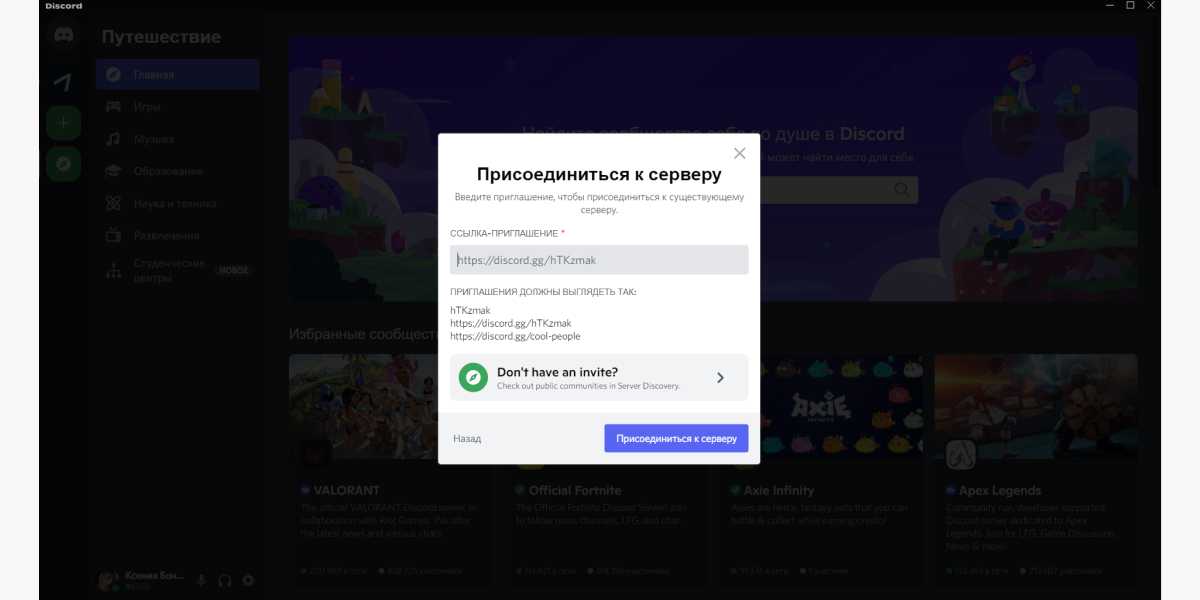 Чтобы найти нужную чат-группу в Дискорде и присоединиться к общению в ней, пользователю надо произвести следующие манипуляции:
