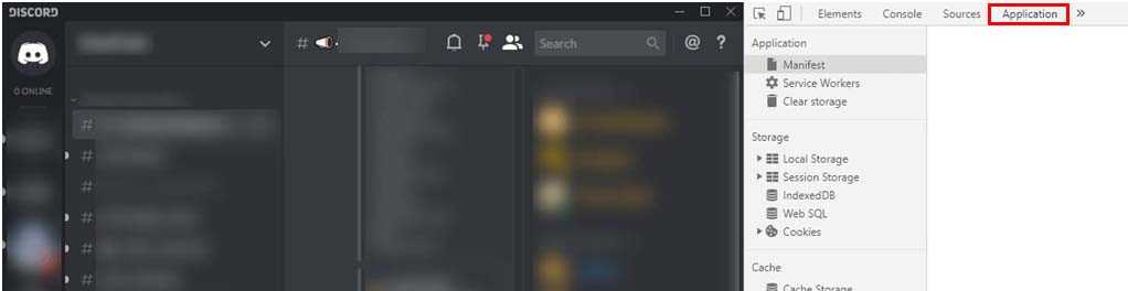Откройте Discord и войдите в свою учетную запись. Затем нажмите Ctrl + Shift + I, чтобы открыть меню разработчика (Developer Options). Нажмите на вкладку Application в верхней части страницы. Возможно, придется развернуть опцию с помощью стрелки, если она скрыта.
