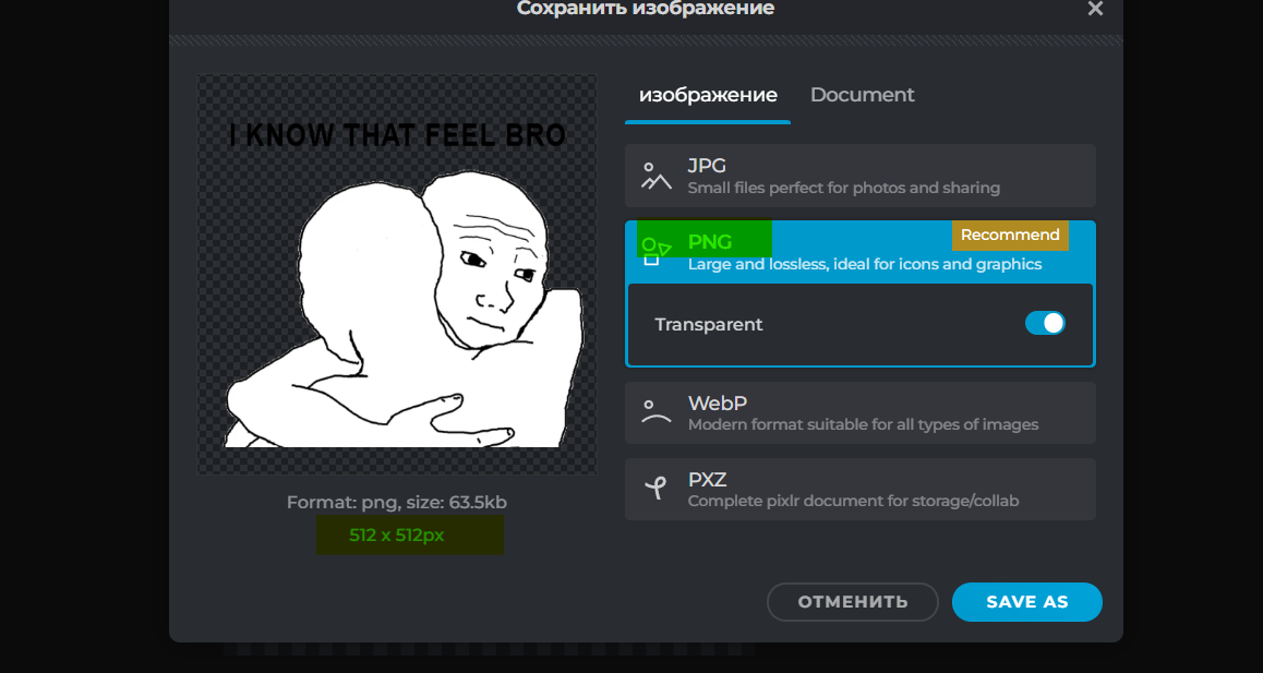 - Стикеры Telegram должны быть в формате PNG с прозрачным фоном, 512 × 512 пикселей .