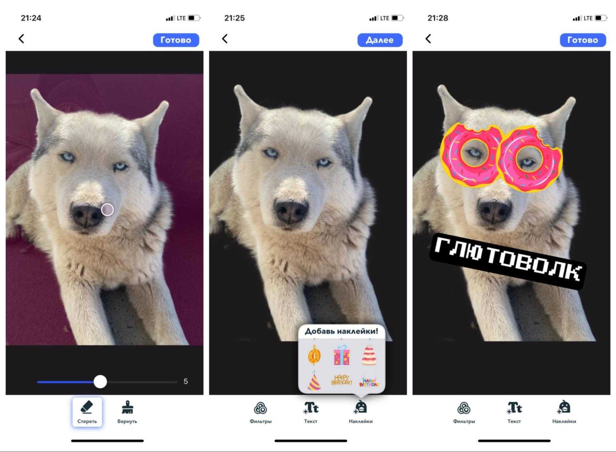 Я стараюсь выбирать фотографии, которые и без особой обработки смешные. Но в приложении есть возможность добавить детали, если хочется еще забавнее.