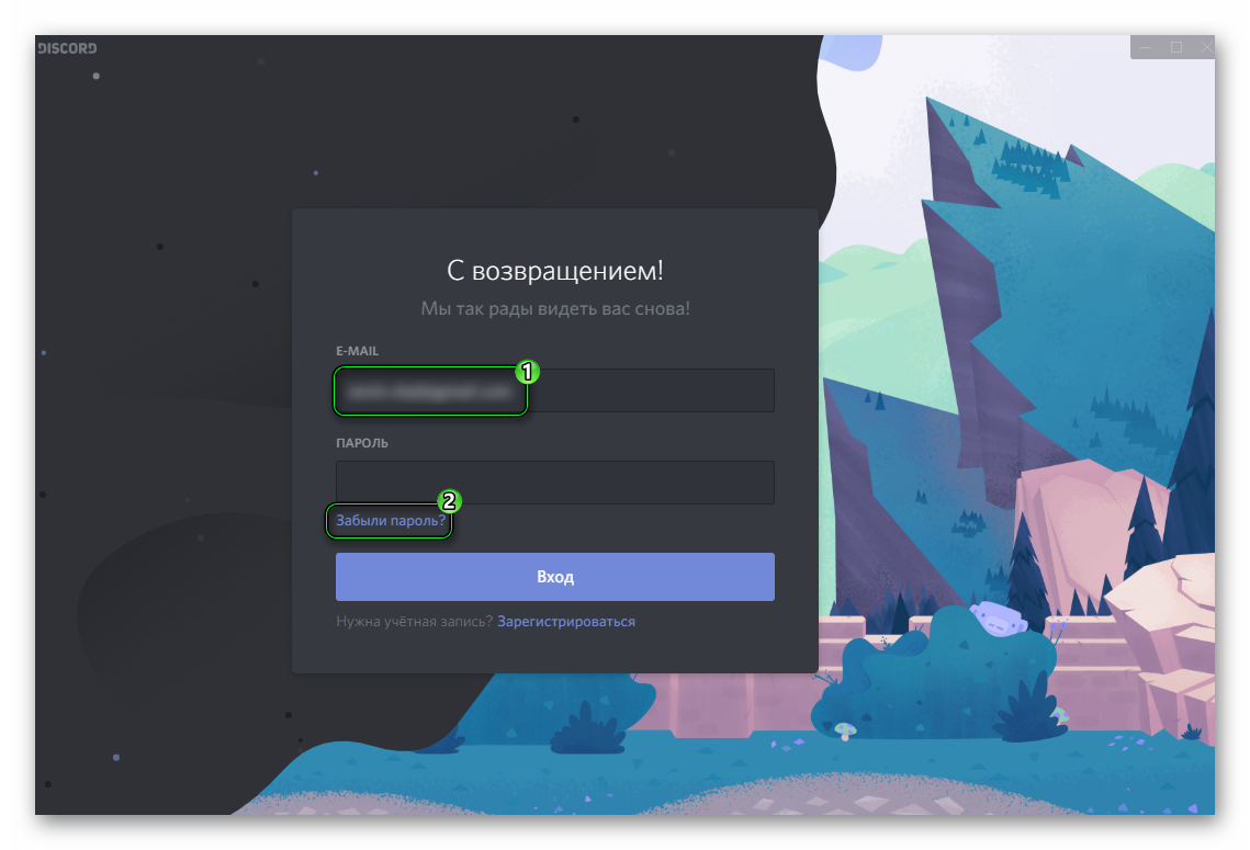 Выше мы уже затрагивали эту тему. Забытый пароль – это всегда разочарование, особенно если сервис не поддерживает восстановление в автоматическом режиме. К счастью, Discord такой возможностью располагает. Для восстановления авторизационных данных необходимо выполнить следующие действия:
