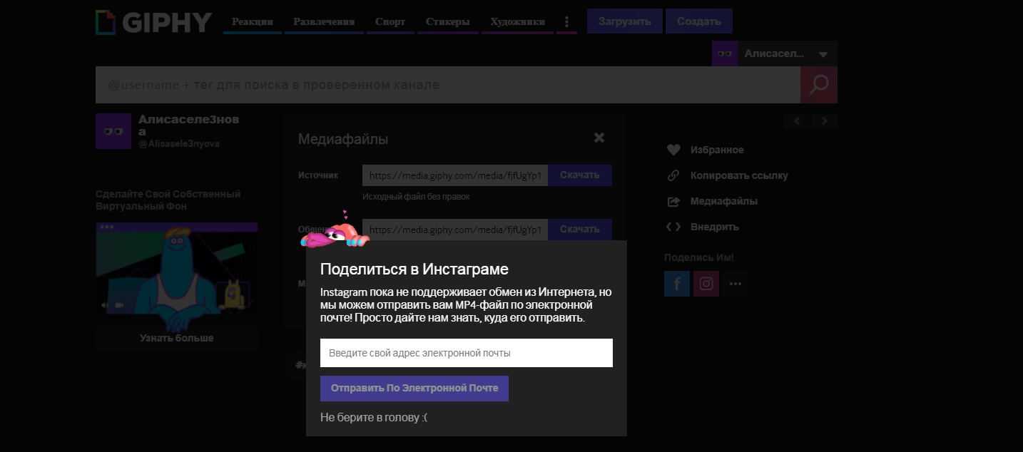 Очень важно: GIPHY более свободная платформа, нежели Instagram или TikTok. Некоторые изображения есть в первом сервисе, но не будут доступны в двух оставшихся из-за их требовательных правил