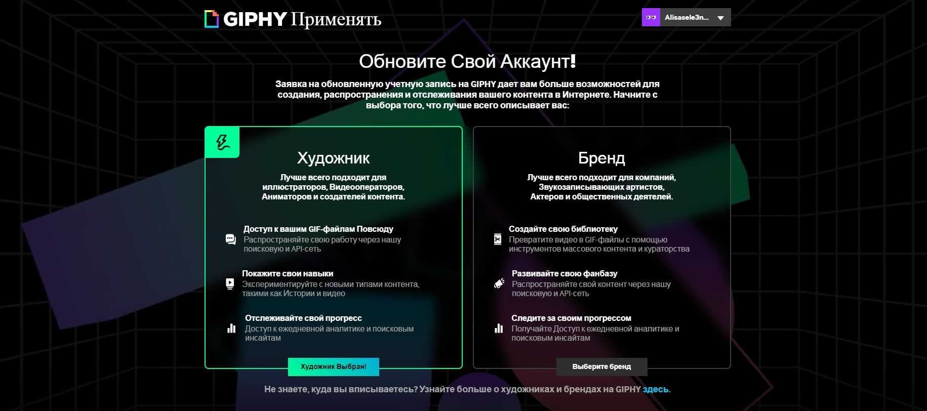 Переходите во вкладку GIPHY For Brands and Artists