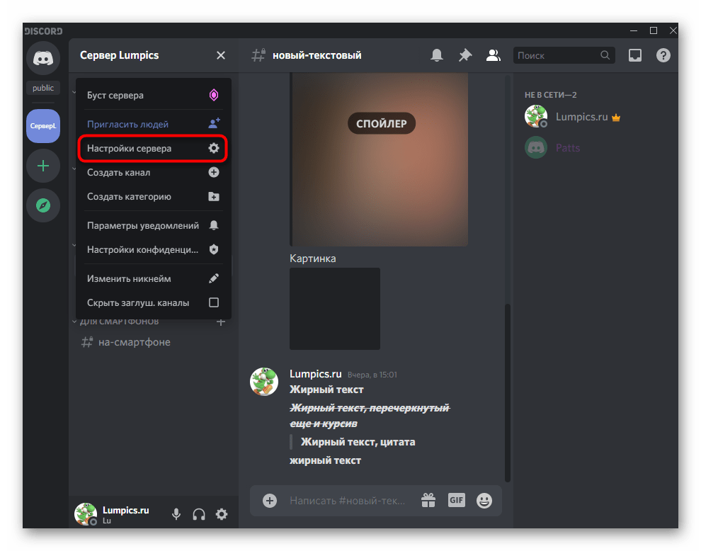 - перейти на нужный сервер, на котором планируется открыть канал;