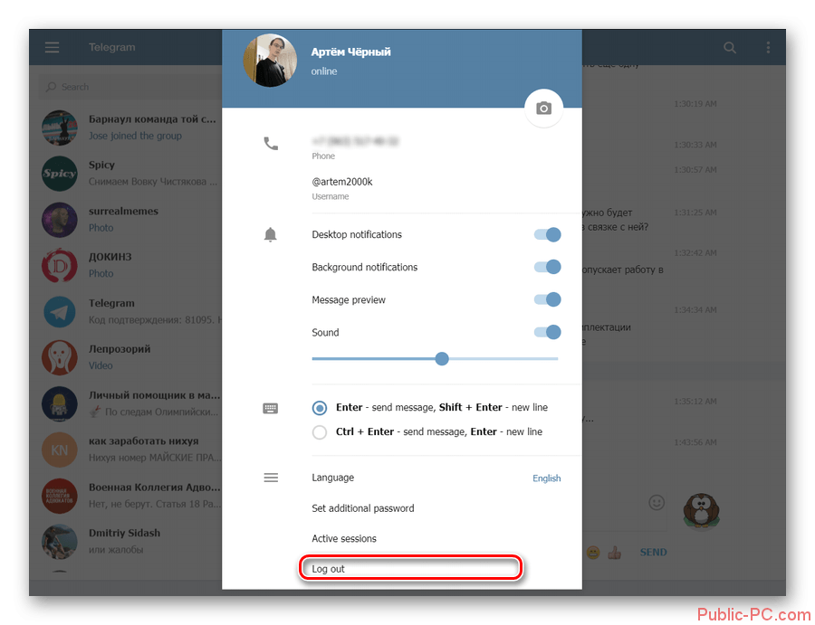 Выход из аккаунта на ПК осуществляется нажатием кнопки «Log out». Но добраться до нее не так уж и просто. Что нужно сделать:
