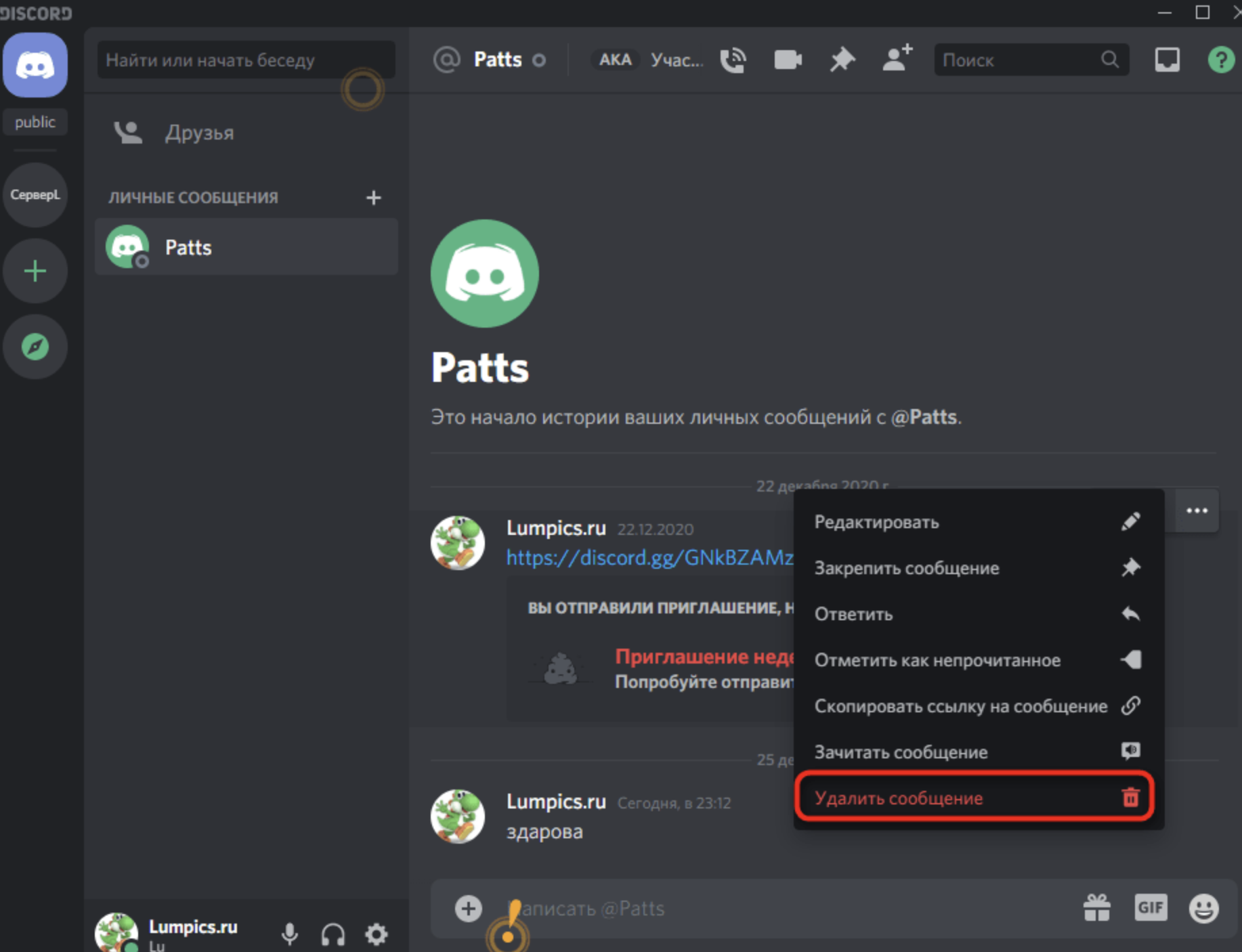 - Это же меню вызывается при переходе в профиль пользователя в сообщениях сервера.