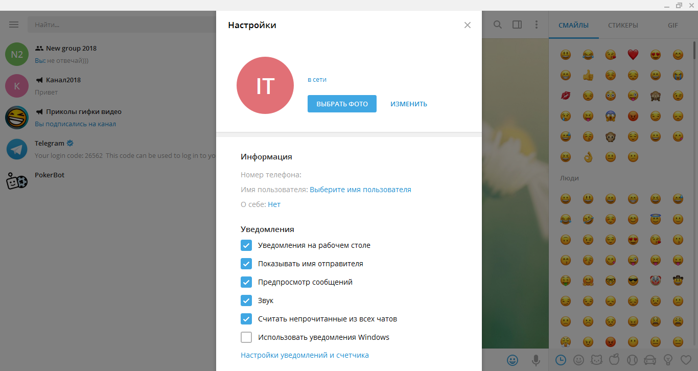 Поскольку версия «Телеграмма» для компьютера имеет абсолютно одинаковый интерфейс для любой операционной системы , будь то Windows, Linux или Mac OS, процедура не будет ничем отличаться.