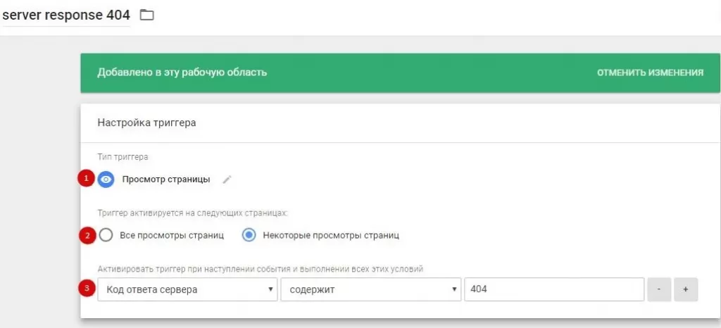 - Условие, при котором должен активироваться триггер: в коде ответа сервера содержится 404.