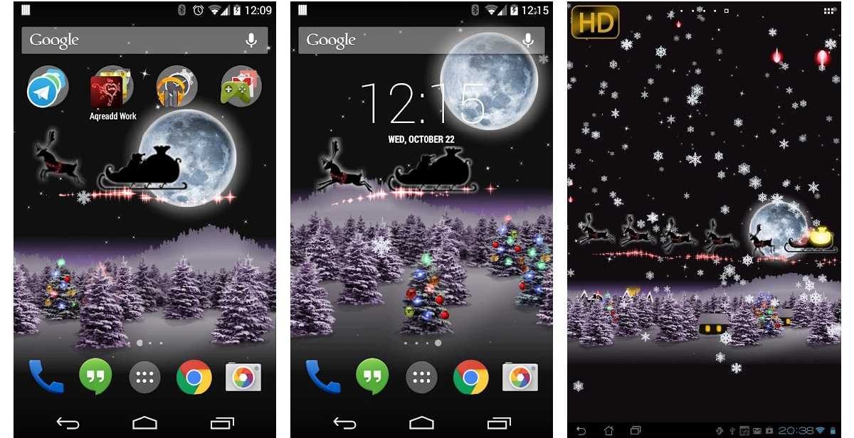 Рождественские живые обои позволяют нам добавить анимированный фон на домашний экран нашего смартфона. Кроме того, это также позволяет нам играть рождественские гимны в случайном порядке, просто встряхивая устройство. .