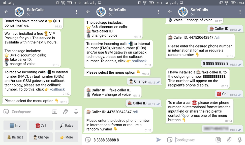 Звонок с подменой номера – это функция, которая позволяет сделать вызов анонимным, безопасным, не прослушиваемым и не отслеживаемым. Чтобы позвонить с подменой номера в Telegram, вам необходимо воспользоваться услугами Telegram-бота «SafeCalls».