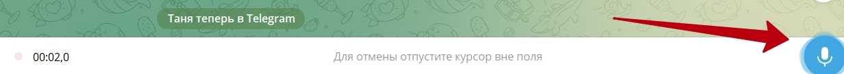 Чтобы записать голосовое сообщение, нужно удерживать значок микрофона.
