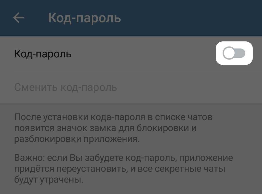 - Нажмите на ползунок справа от надписи Код-пароль;
