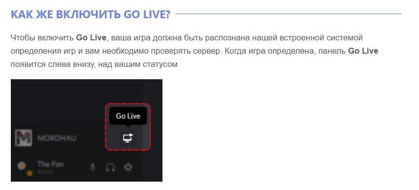 Функция Go Live — быстрый способ настроить стрим на голосовом канале для ограниченного числа пользователей (до 10 человек). Функция доступна только на компьютерах с Виндовс 8 или 10, а также приложениях Дискорд. Смотреть стрим можно только с веб-версии или ПК. С телефона просмотр пока недоступен, но со временем эта опция должна быть добавлена.