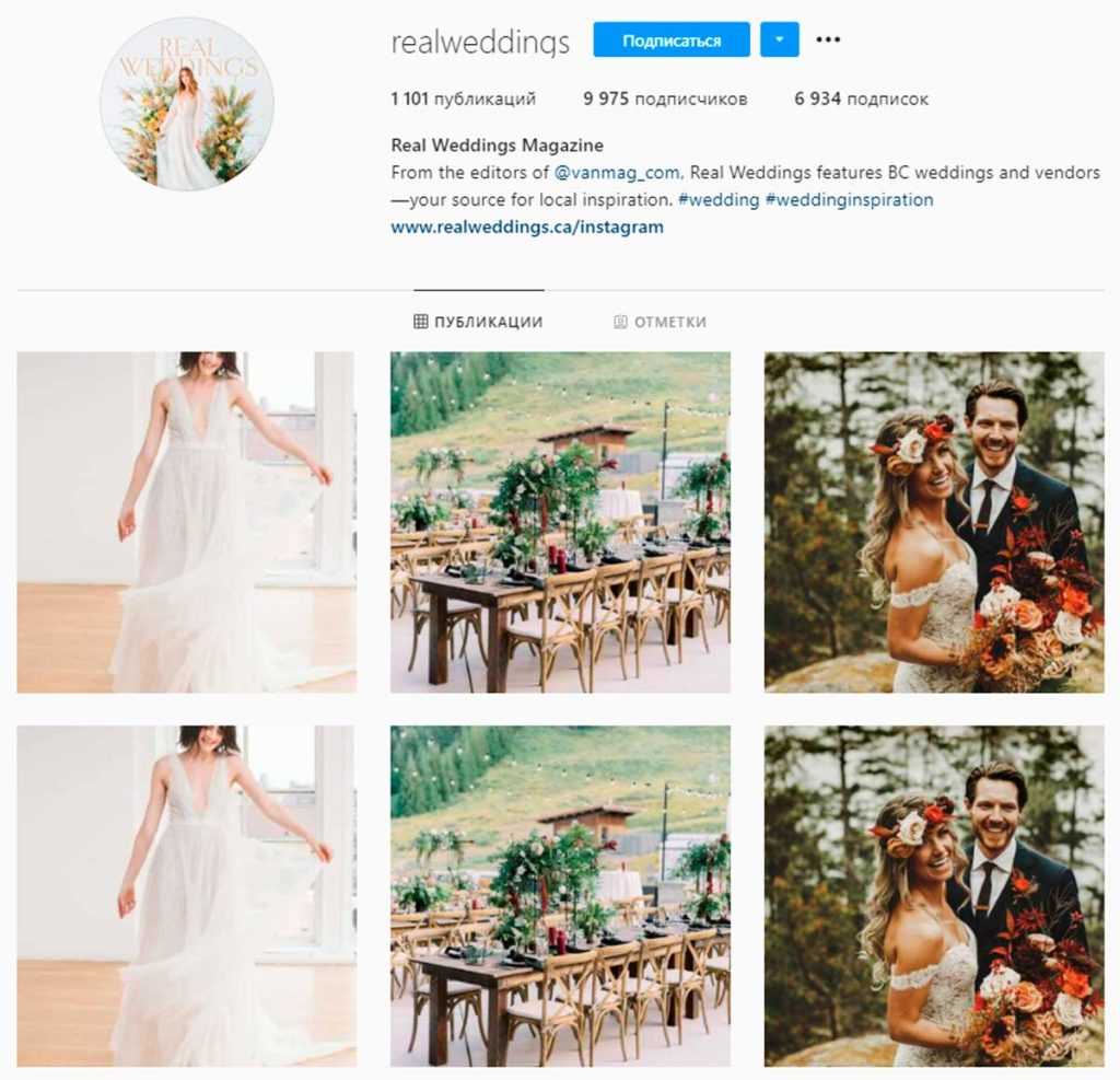 Для проведения эксперимента взяли бизнес-профиль свадебного журнала «Real Weddings», с которым работала Стейси. На аккаунте около 10 тысяч подписчиков, что повышает качество исследования, по сравнению с небольшими профилями.