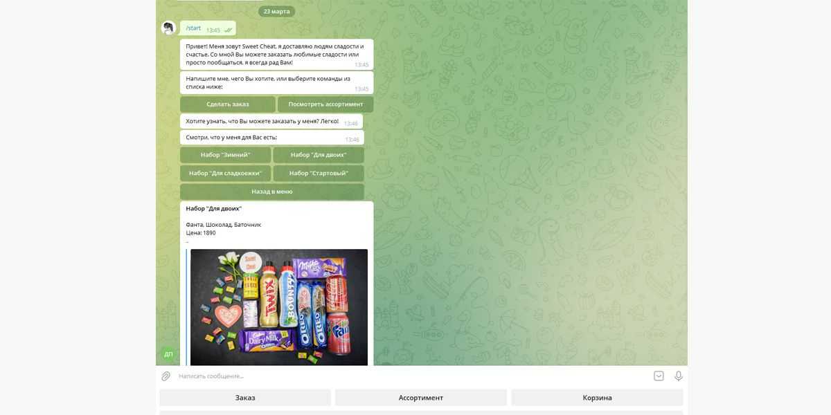 После добавления Telegram-бота можно создать заказ, для этого необходимо:
