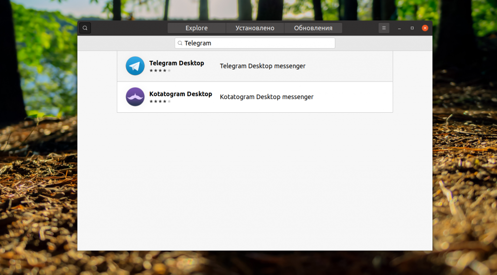 Самый простой способ установить Telegram Ubuntu 18.04 с помощью центра приложений. Запустите центр приложений и введите в строке поиска Telegram: