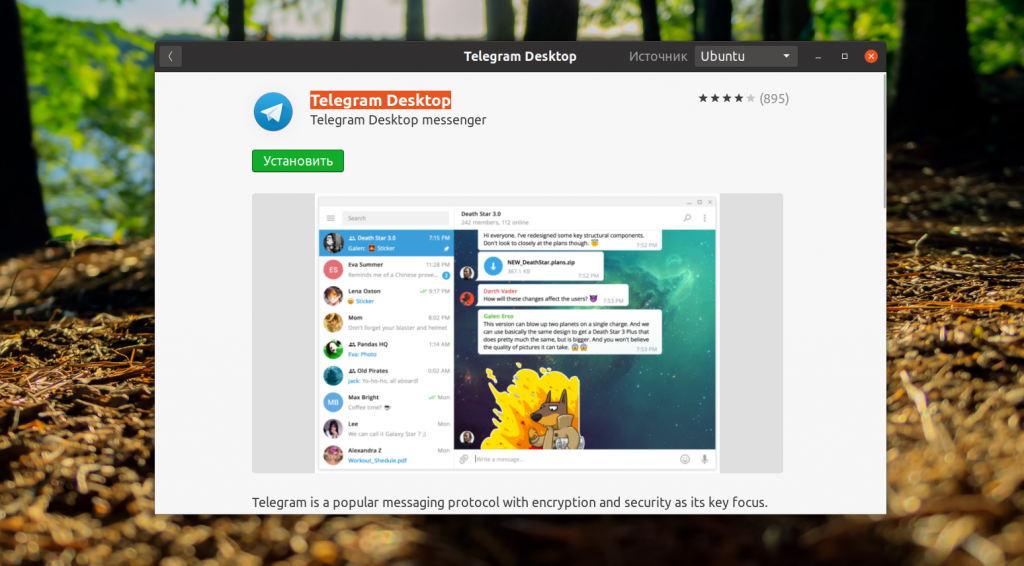 Кроме перечисленного в телеграме есть: боты для выполнения различных полезных действий, стикеры, голосовые звонки, фоторедактор. И на этом остановимся. Считаю, что для начала этого достаточно, иначе статья превратится в обзор. При желании вы и сами разберетесь. Приступим к установке Telegram в Ubuntu.