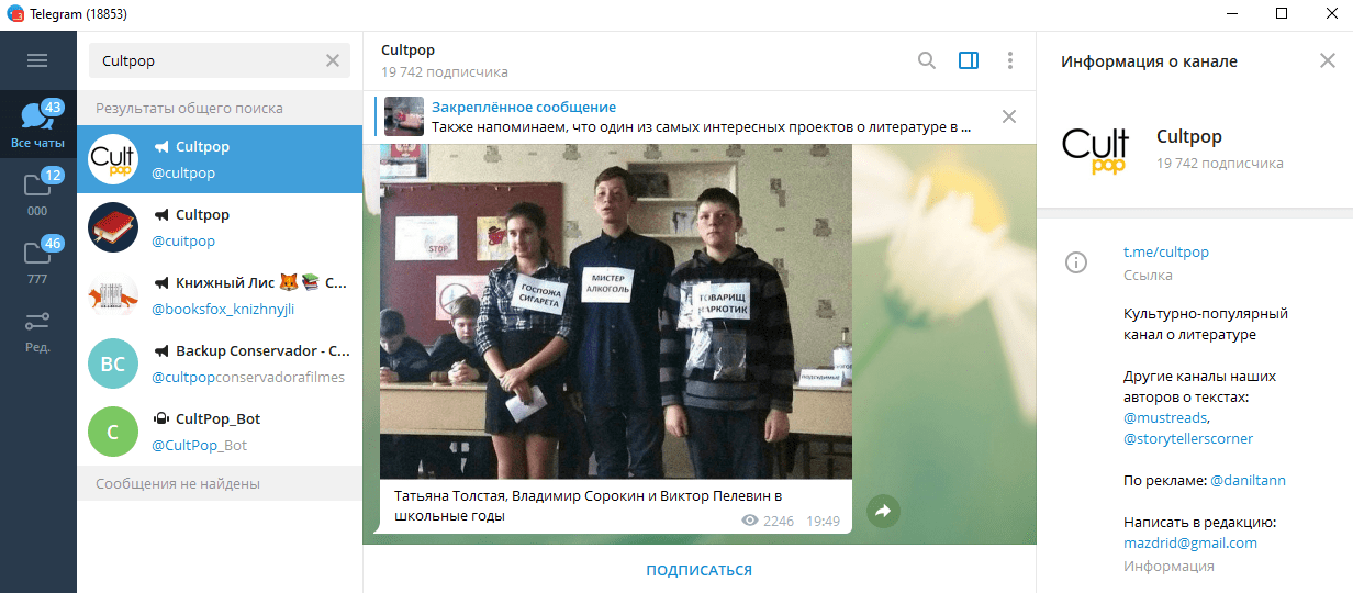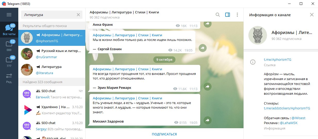 Источник «Литература» позволяет получить доступ к небольшим рассказам. Мини-произведения размещаются в тексте постов. Формат подходит тем, кто не может тратить на чтение большое количество времени. Небольшие рассказы легки для восприятия, читаются быстро и могут заполнить возникающие паузы.
