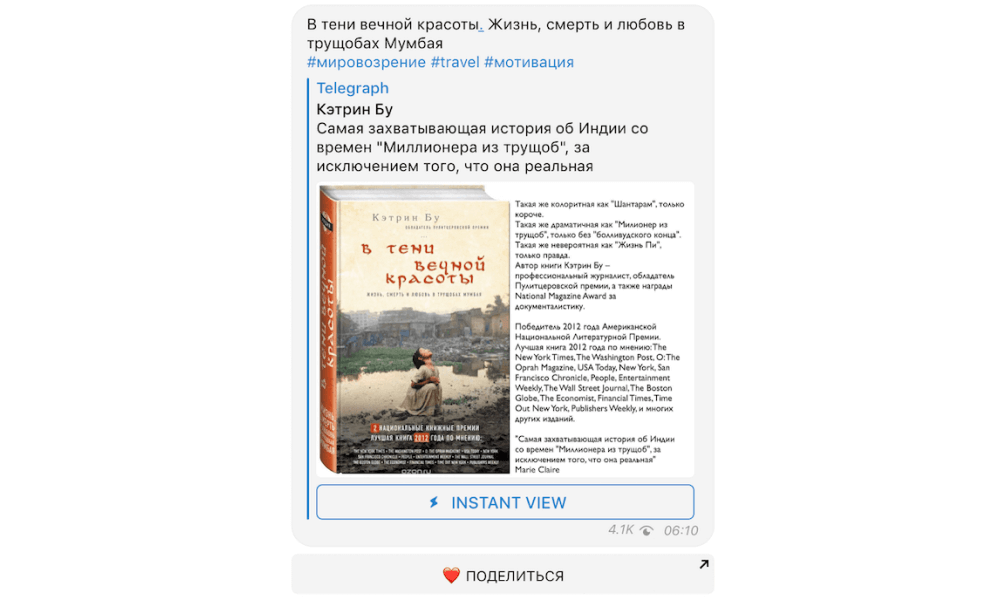 Этот телеграм-канал понравится детям и их родителям. Их автором выступает Аня Пивоварова, рассказывающая о новинках в мире детских книг, книжных героях, дополняя это яркими иллюстрациями. Здесь можно выбрать не только книгу для чтения перед сном, но и вариант подарка для малыша на праздники.