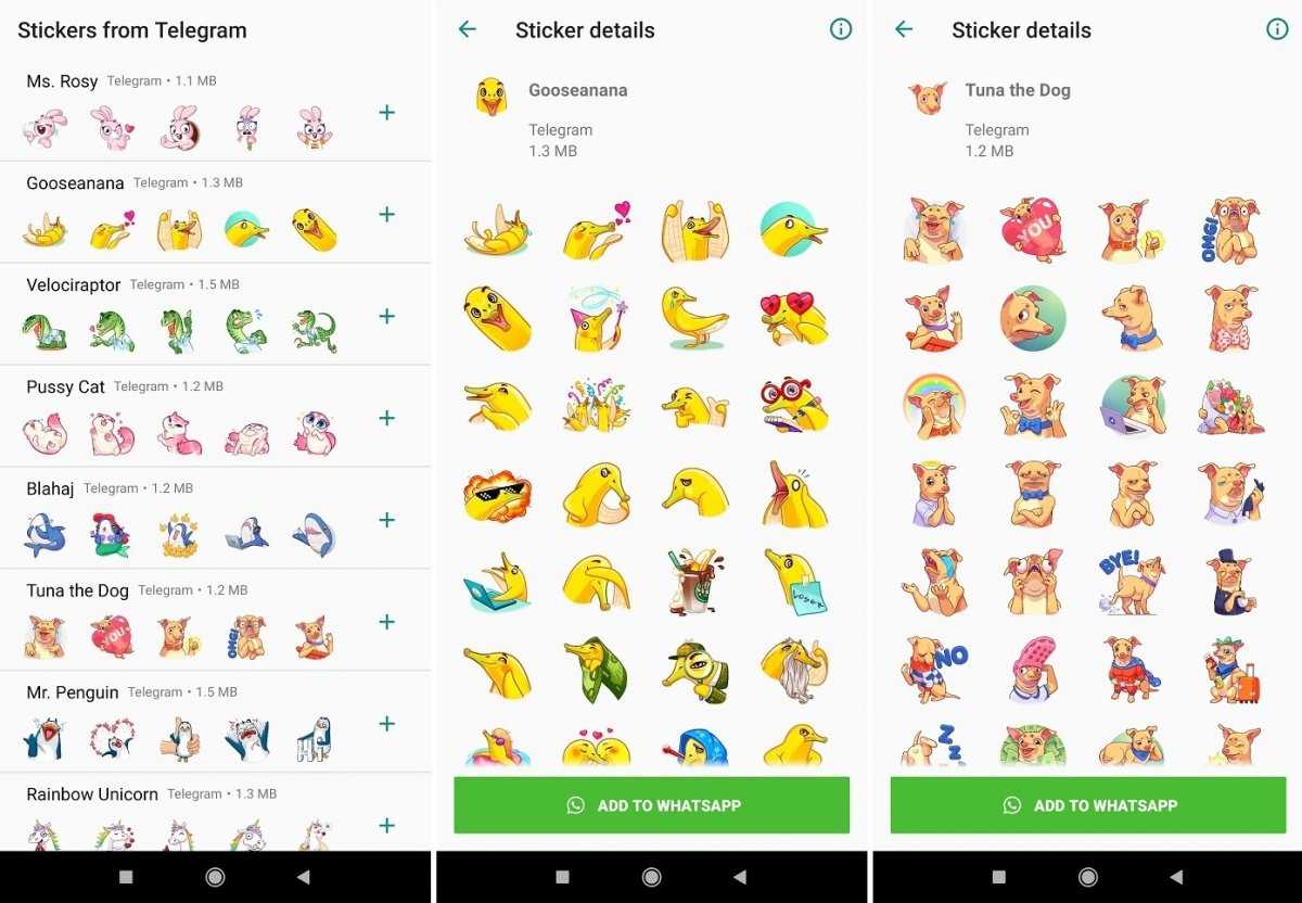 Если вы давно используете стикеры в Telegram, и вам не хватает некоторые из ваших любимых стикеров в WhatsApp, это ваше приложение. Разработанное Telegram, здесь мы можем скачать и добавить десять самых популярных наборов мессенджера Павла Дурова: велоцираптор, белый медведь, радужный единорог и т. д. Здесь нам не придется терпеть рекламу, присутствующую в других приложениях той же категории, хотя приложение будет любезно приглашать нас время от времени скачать Telegram Messenger.