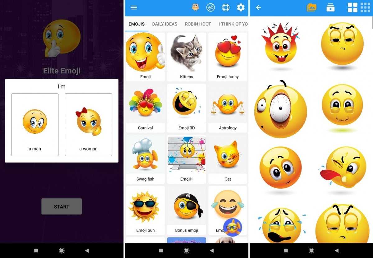 Скриншоты интерфейса Elite Emoji