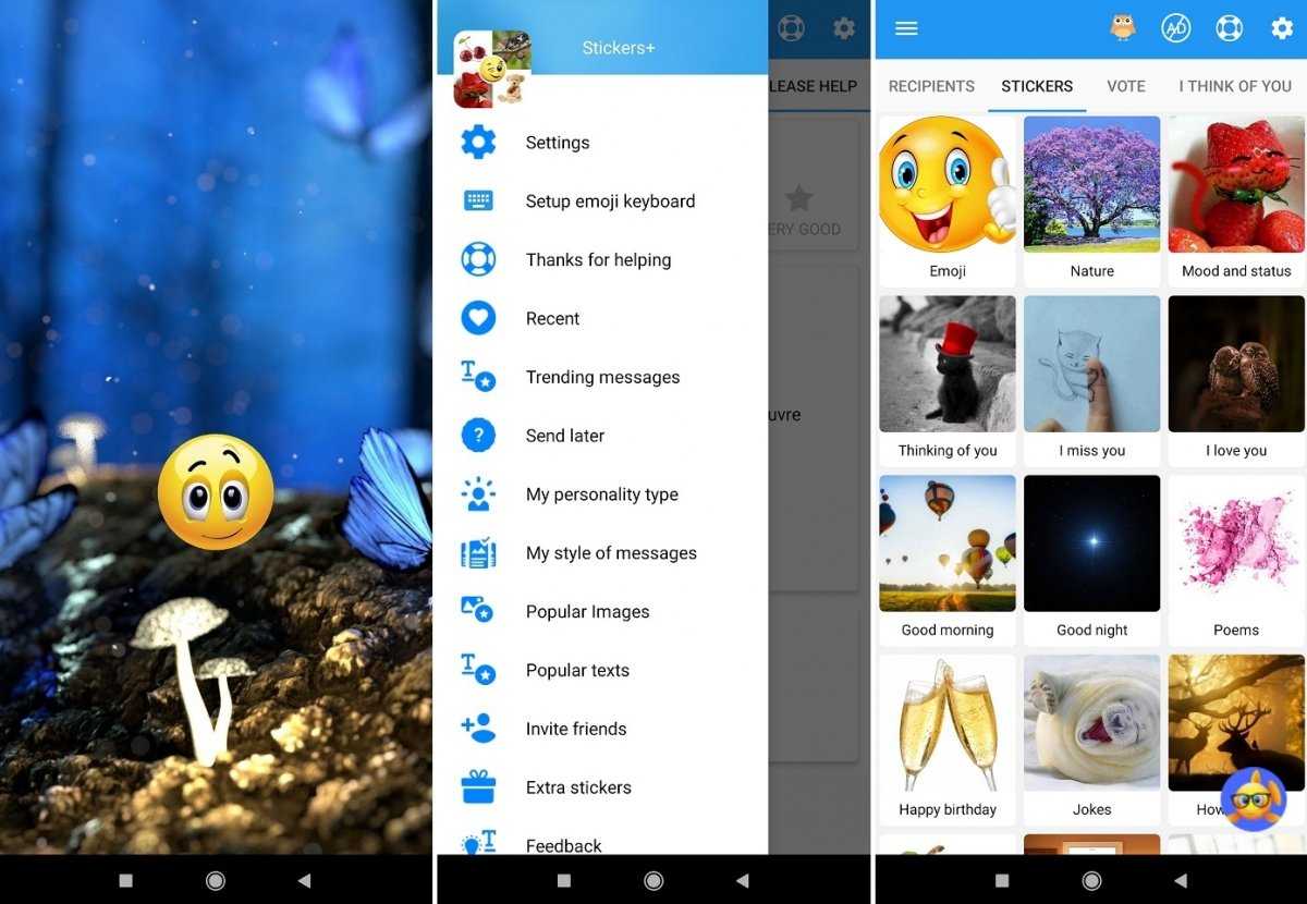 От того же разработчика, что и предыдущий Elite Emoji, интерфейс, разделы и функции практически идентичны предыдущему, включая личные вопросы перед началом его использования. Отличие — в содержании. Мы не знаем, каким критериям следовали разработчики, чтобы добавить одни стикеры в одно, а другие в другое, но это не значит, что оно не может быть одним из лучших приложений со стикерами, главным образом благодаря разнообразию его содержимого.