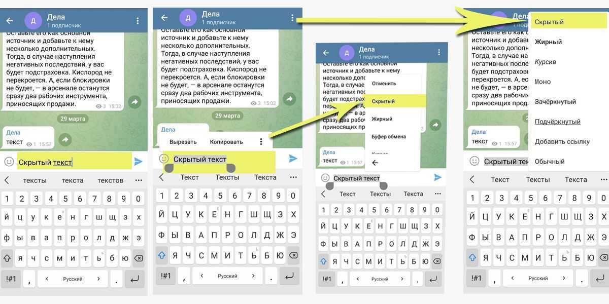 Скрыть можно как часть текста, так и все сообщение в Телеграме.