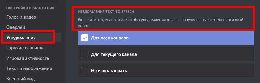 Если ты ч Если вы выбрали «Никогда» для уведомлений «Преобразование текста в речь», то в Discord не будет звука от бота TTS. Изменение этого параметра может решить вашу проблему на два других варианта, то есть для всех каналов или на для текущего выбранного канала , может решить проблему. Более подробная информация представлена ниже: