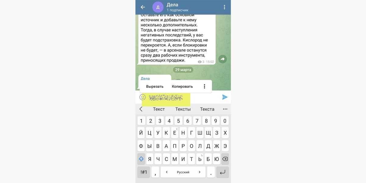 Вот разработчики скрытого текста в Телеграме и озаботились проблемой. Теперь никаких предупреждений: просто скройте часть текста, и все поймут, что там информация не для всех. И сами выберут, читать или нет. Чтобы прочесть, достаточно нажать на прямоугольник, скрывающий слова.