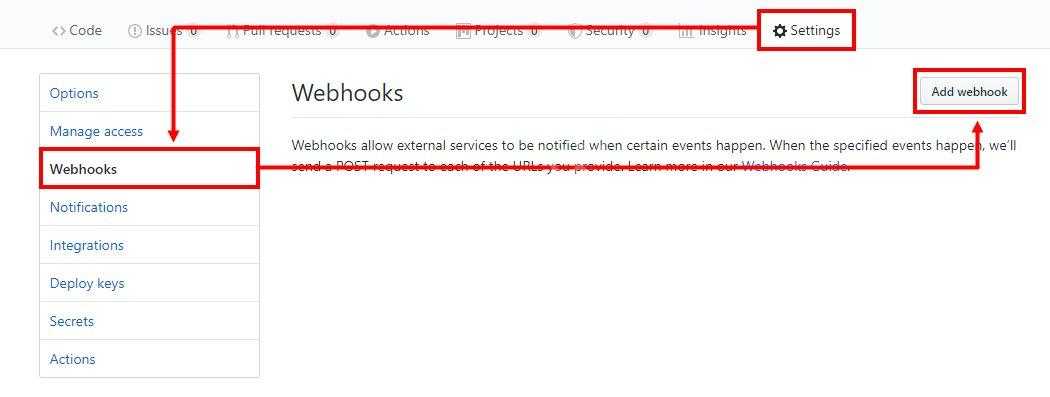 Подключение вебхуков для репозитория