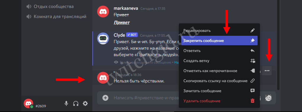Правила для Дискорда можно написать отдельным сообщением и закрепить его, чтобы все участники сервера могли видеть, на какие параметры общения стоит ориентироваться! Давайте освежим информацию о том, как закреплять сообщения.