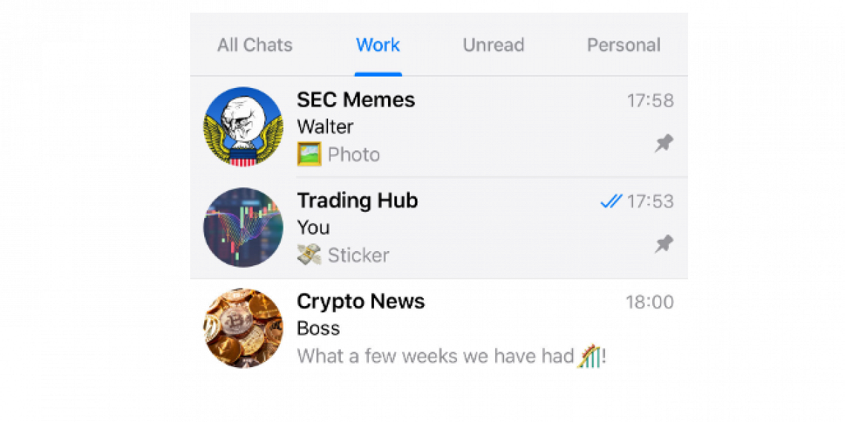 В Telegram теперь можно сортировать и группировать чаты и каналы