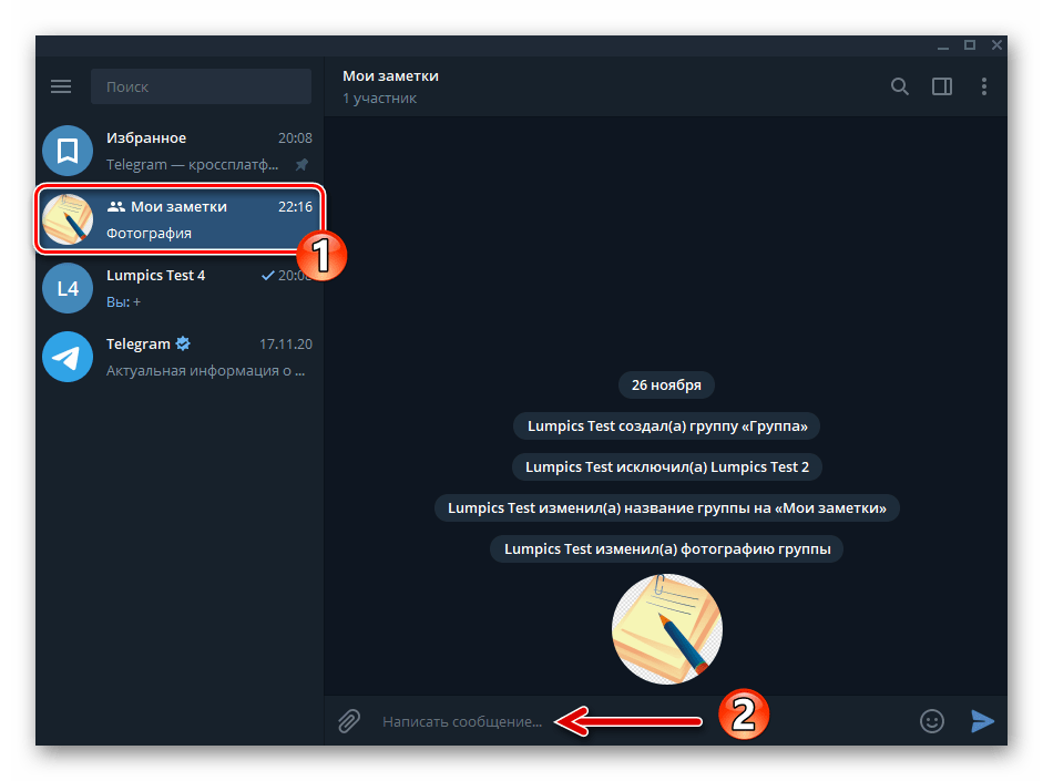 Принципиально варианты создания чата c самим собой в Telegram для Windows не отличаются от вышеописанных, применимых в мобильных версиях мессенджера. То есть для решения озвученной в заголовке статьи задачи с ПК вам необходимо задействовать модуль «Избранное», создать состоящую исключительно из вашей персоны группу или ввести в приложение свой второй аккаунт.