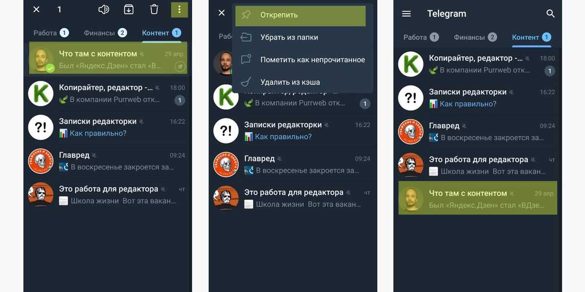 В Телеграме закрепить сообщение наверху чата несложно, как и диалог наверху списка. Отменить это действие также не составит труда.