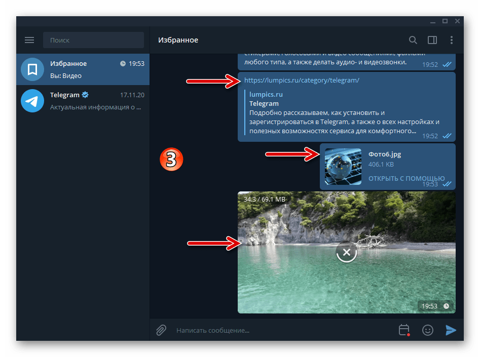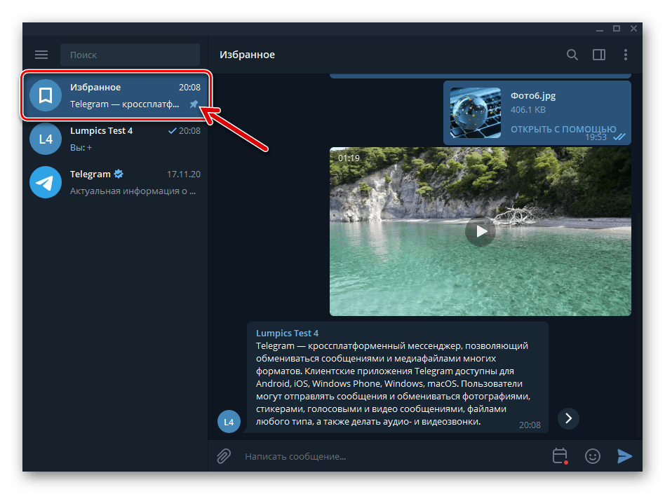 В дальнейшем вы можете открывать «Избранное» и получать таким образом доступ к сохранённой в нём информации, выполнив пункты №№ 1-2 из этой инструкции. Кроме того, рассмотренное хранилище станет доступным в списке открытых в Telegram чатов.