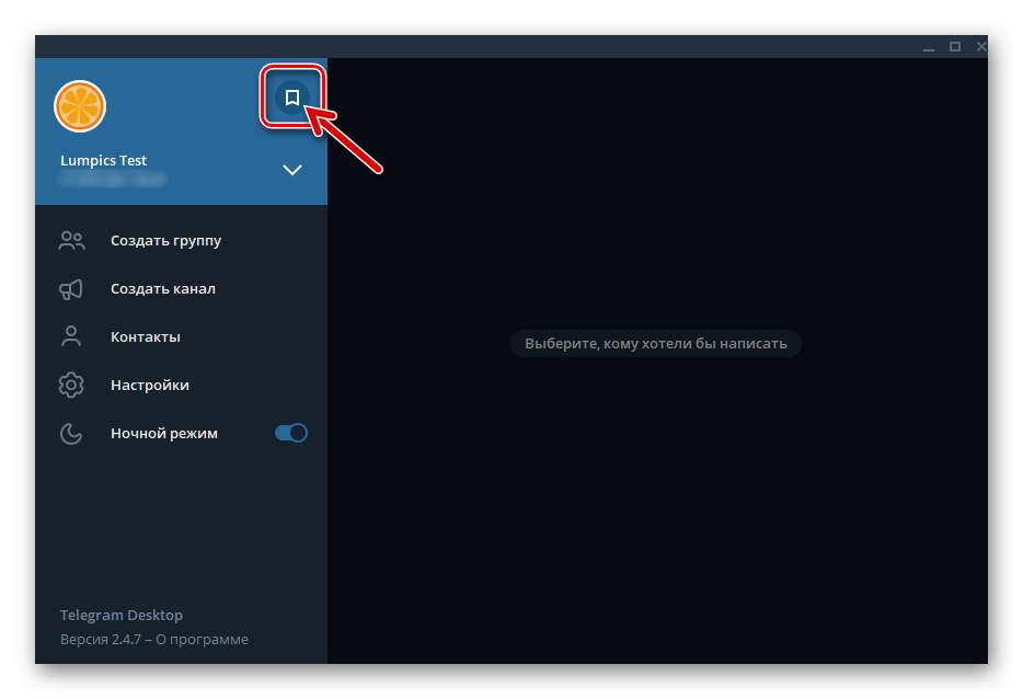 Нажмите на круглую кнопку «Избранное» в правом верхнем углу отобразившейся в окне области с информацией и опциями мессенджера.