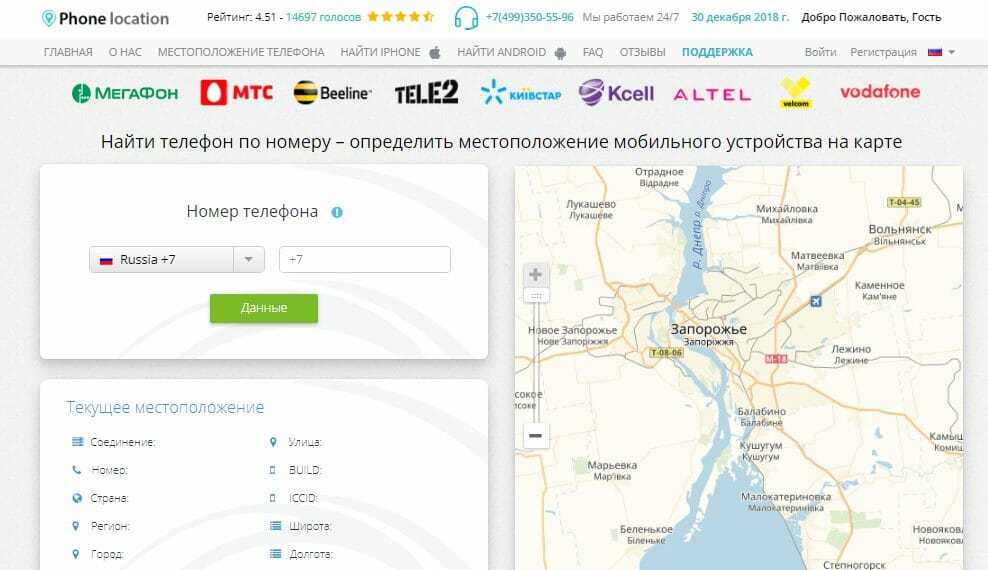 В списке таких сервисов можно найти phone-location.net, для работы с которым следует выполнить такие действия: