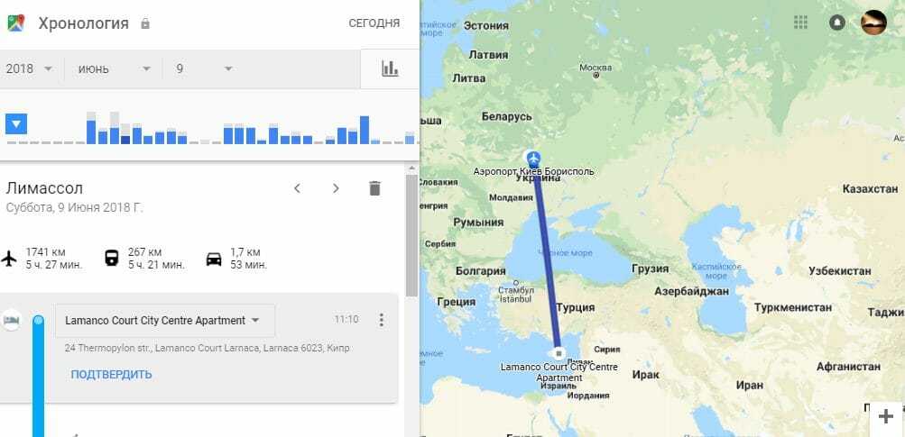 Проверка истории перемещений на сервисе Location History. Здесь находится карта, на которой отмечено положение пользователя за несколько последних часов. Информация достаточно точная и собирается с помощью Wi-Fi и модулей GPS.