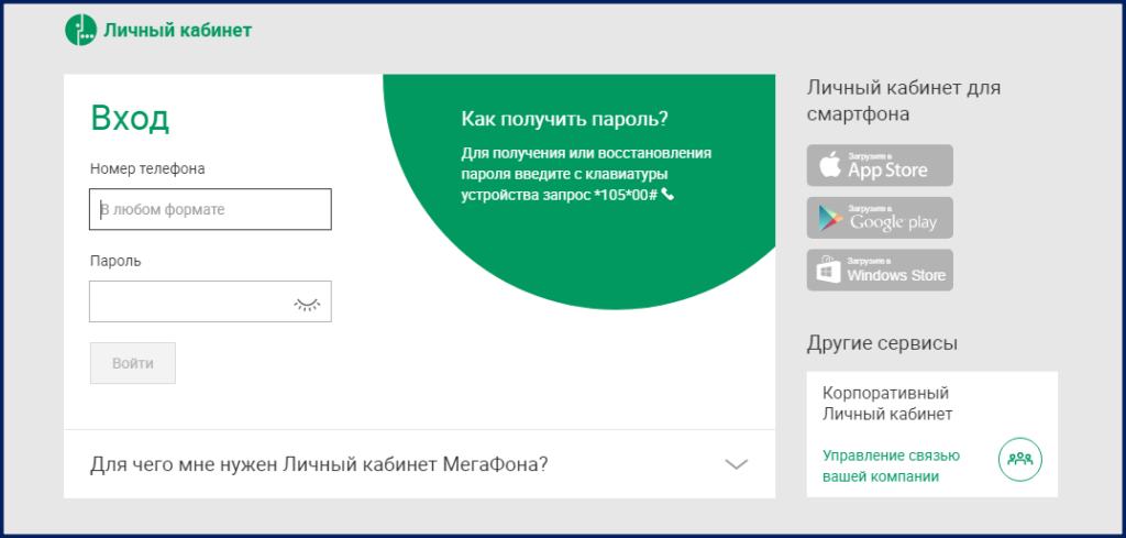 Использование Личного кабинета Мегафон