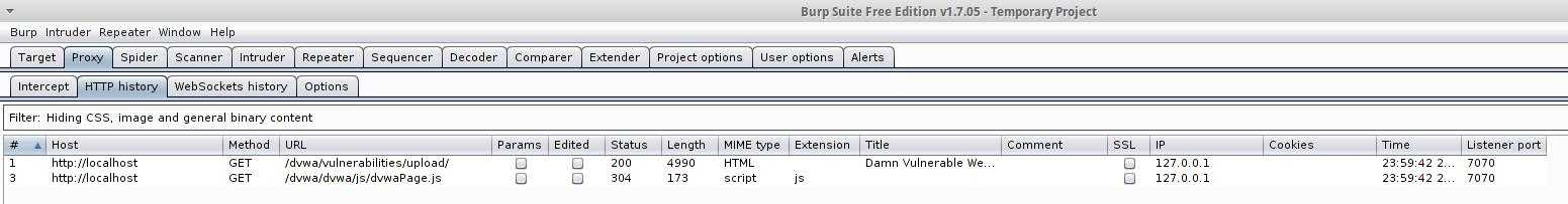 Обновим страницу http://localhost/dvwa/vulnerabilities/upload/ и убедимся, что связь действительно осуществляется через прокси: