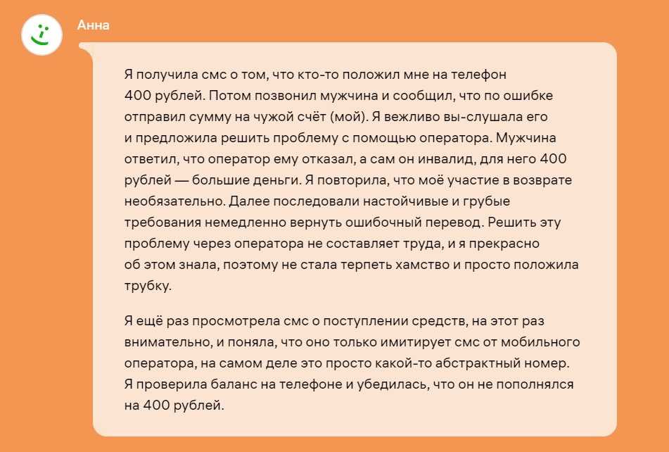 - Поверив в сообщение, получатель отправляет запрошенную сумму мошеннику.