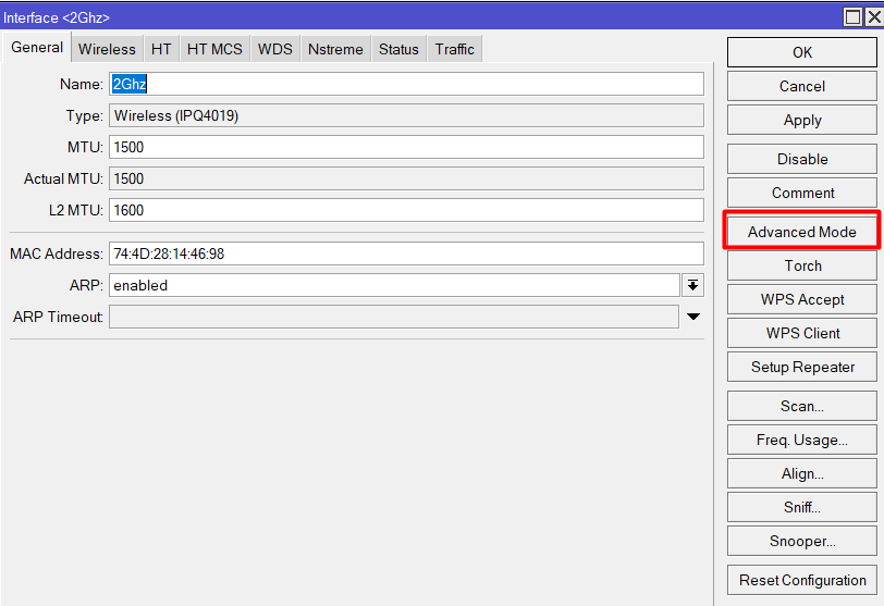 Не забудьте выбрать Advaced Mode при настройке Wi-Fi, как показано на скриншоте выше.