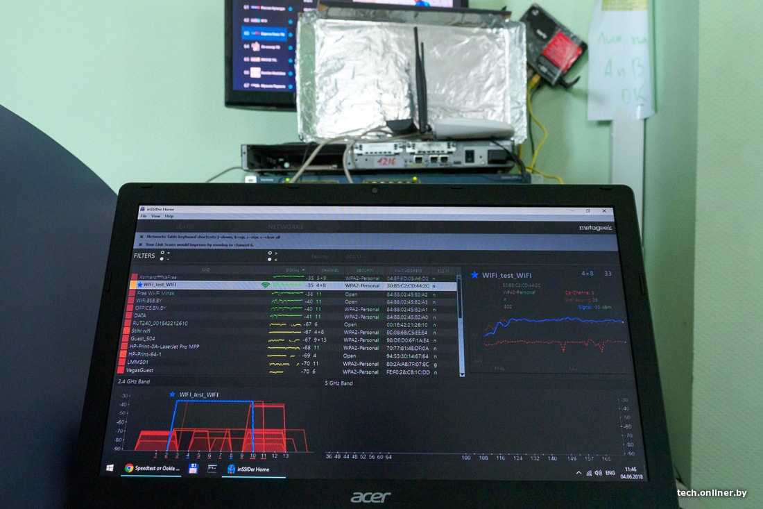 По проводу они подключались к 50-мегабитному интернету, затем измерялась мощность сигнала и скорость передачи данных — то, что важно для людей, использующих Wi-Fi в первую очередь для подключения IPTV и «тяжелого» серфинга по интернету. Роутер находился как в непосредственной близости от компьютера, так и за разными преградами в виде двери и железобетонной стены
