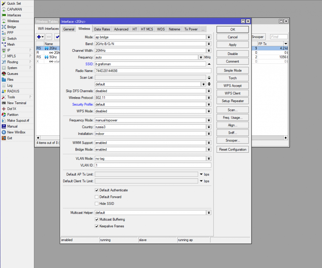 Это все настройки, которые необходимо оптимизировать для работы wi-fi 2Ghz на микротиках. Оцените результат, напишите комментарий. И давайте переходить к настройке 5Ghz