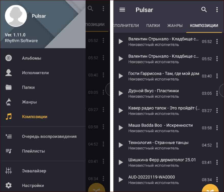 | Название музыкального плеера для Андроид | Pulsar Pro |